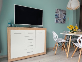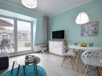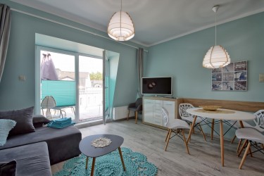 Baltic Star to nowoczesny apartament typu Deluxe. Urządzony w klimacie nadmorskim.